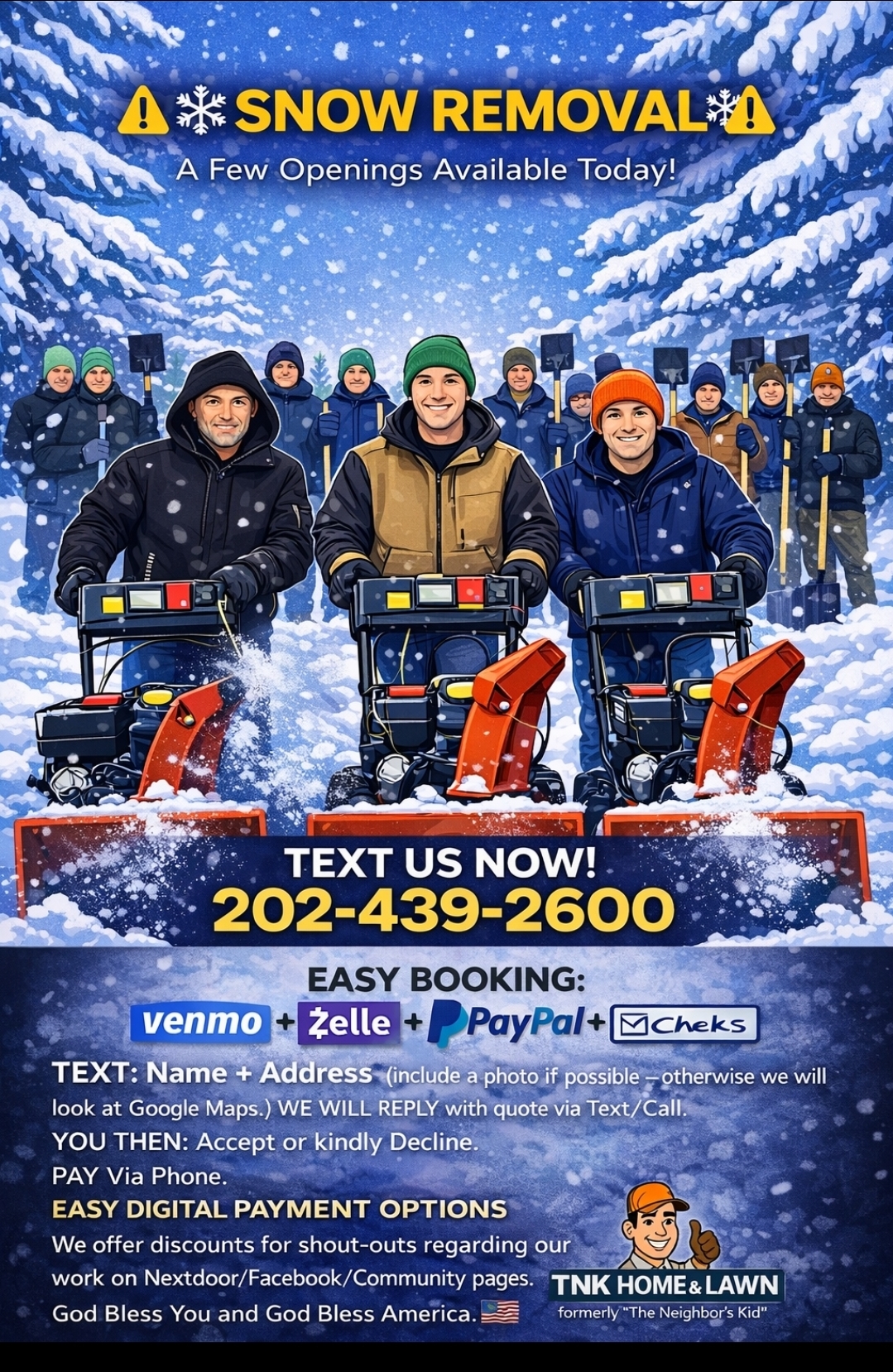Yes! ❄️ Snow Removal, spots available for today⚠️